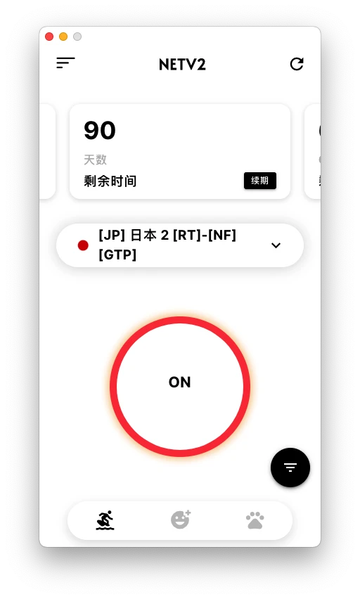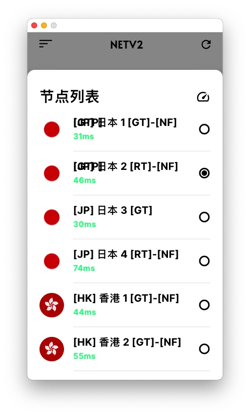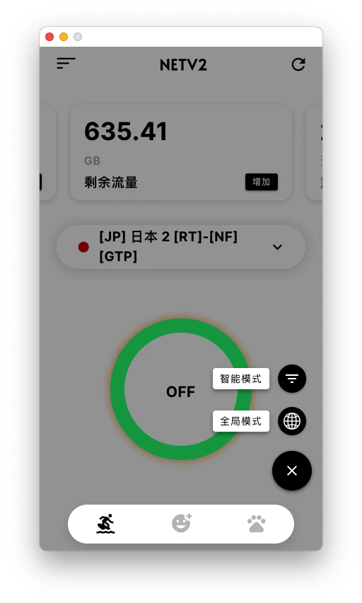 自动选择最优节点,绿色光圈表明已启动。红色光圈表示已关闭