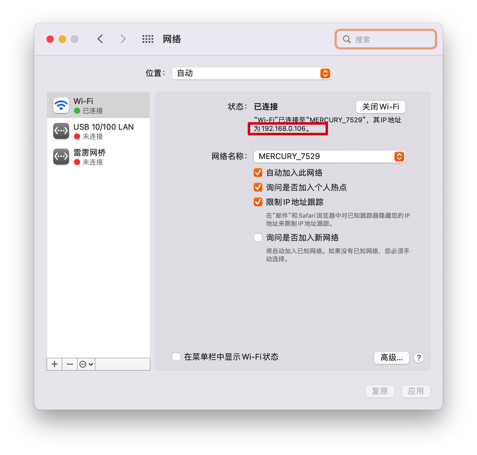 这样就知道了服务器地址为192.168.0.106端口7890 == Shadowrocket