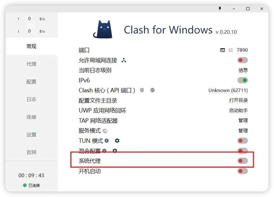 - 如果要退出软件,请关闭代理后再退出软件,否则可能导致不开clash无法打开网页。